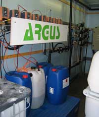 Die Infiltration erfolgte kontinuierlich über 6 unterschiedlich dimensionierte Brunnen mit Raten von 0,4 – 1,5 m³/h pro Brunnen mittels einer redundant ausgelegten, vollautomatischen, SPS-gesteuerten, fernüberwachten Dosierstation. Der Einsatz von hochprozentigen Säuren und Laugen stellte hohe Anforderungen an den Arbeitsschutz und an die eingesetzten Materialien.